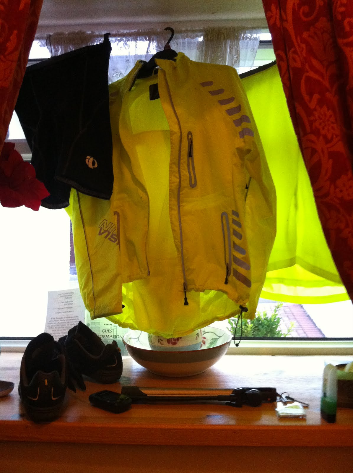 didn't' sleep very well last night and I was wide awake by 6am. A combination of nerves, excitement and anticipation. The heavy rain was continuing when I drew the curtains, disappointed that my first day would be a wet one. After showering I had to re-pack the bike bags due to one side been heavier than the other. It caused a few wobbles on my cycle from